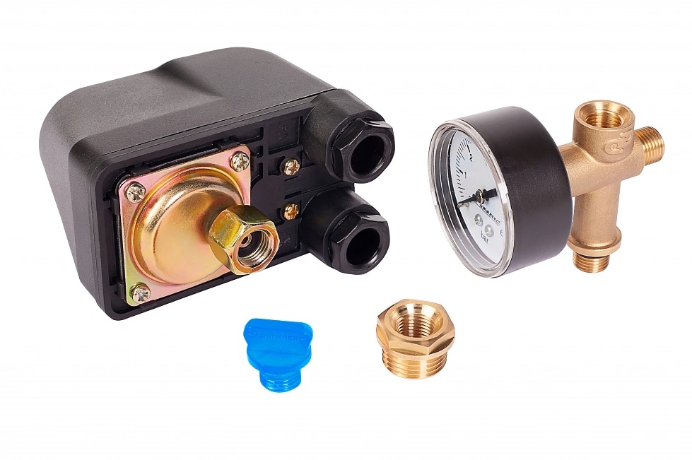 Визуальный контроль давления в системе водоснабжения позволяет осуществлять манометр с пределом измерения 6 бар.
