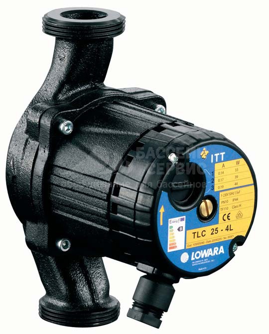 Ещё одна важная особенность — наличие трёхпозиционного переключателя для изменения рабочего режима насоса. Таким образом циркуляционные насосы TLC 25-7L от Lowara отлично подойдут для эксплуатации и в зданиях с невысокой нагрузкой на трубопроводные коммуникации. Показатель рабочего давления соответствует стандартным 10 бар и взят с достаточным запасом, поскольку на практике в коммунальных системах, тем более с умеренной и слабой загрузкой, такое давление попросту исключено. Мощность двигателя составляет от 54 до 89 Ватт. Температура перекачиваемой среды для модели TLC 25-7L может достигать +110 градусов. Напор составляет от 3,6 до 0,4 м, подача — от 0,6 до 3,9 м3/ч. Сеть питания переменная напряжением 220В.