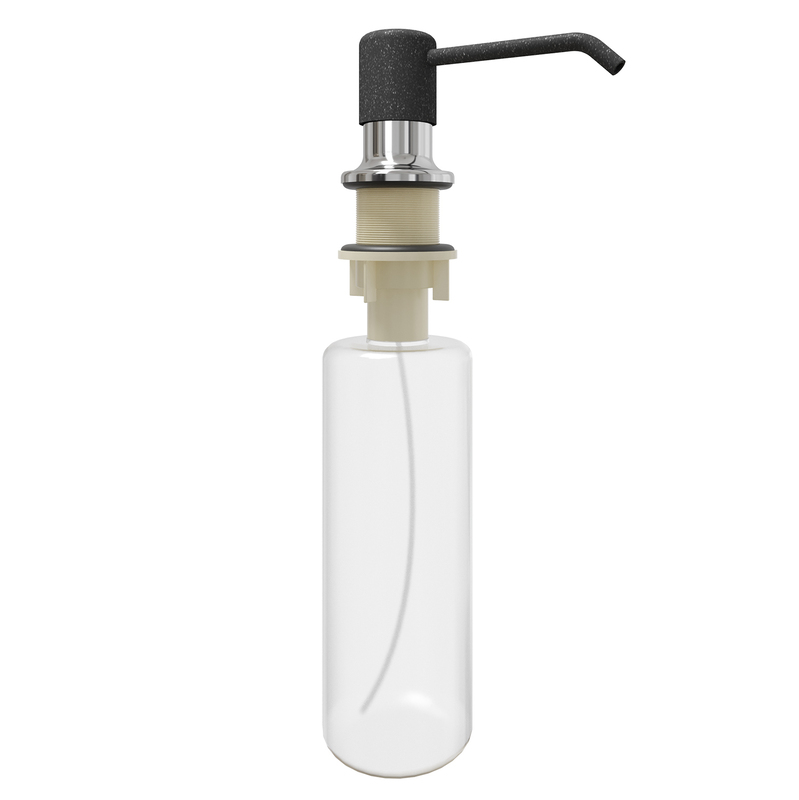 Дозатор для жидкого моющего средства MIXLINE ML-D02 антрацит 343, объем 330 мл 547859 встраивается в мойку или в столешницу. Емкость со средством скрыта под поверхностью, сверху остается лишь носик устройства.