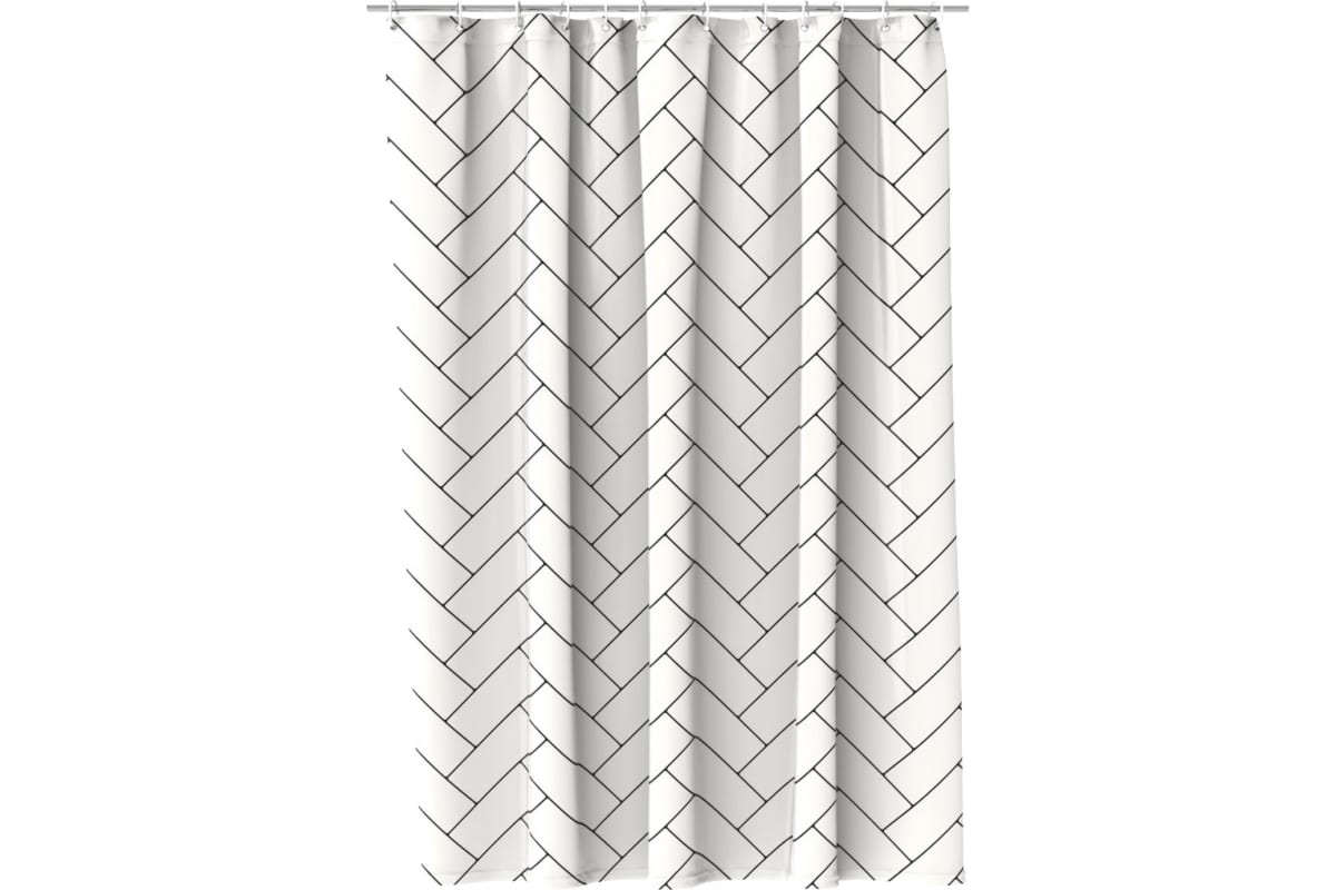 Штора для ванной Fora с классическим рисунком “косичкой”, который часто используют в выкладке кафельной плитки, способна стать оригинальным дополнением для санузла в стилях контемпорари, поп-арт и современный.