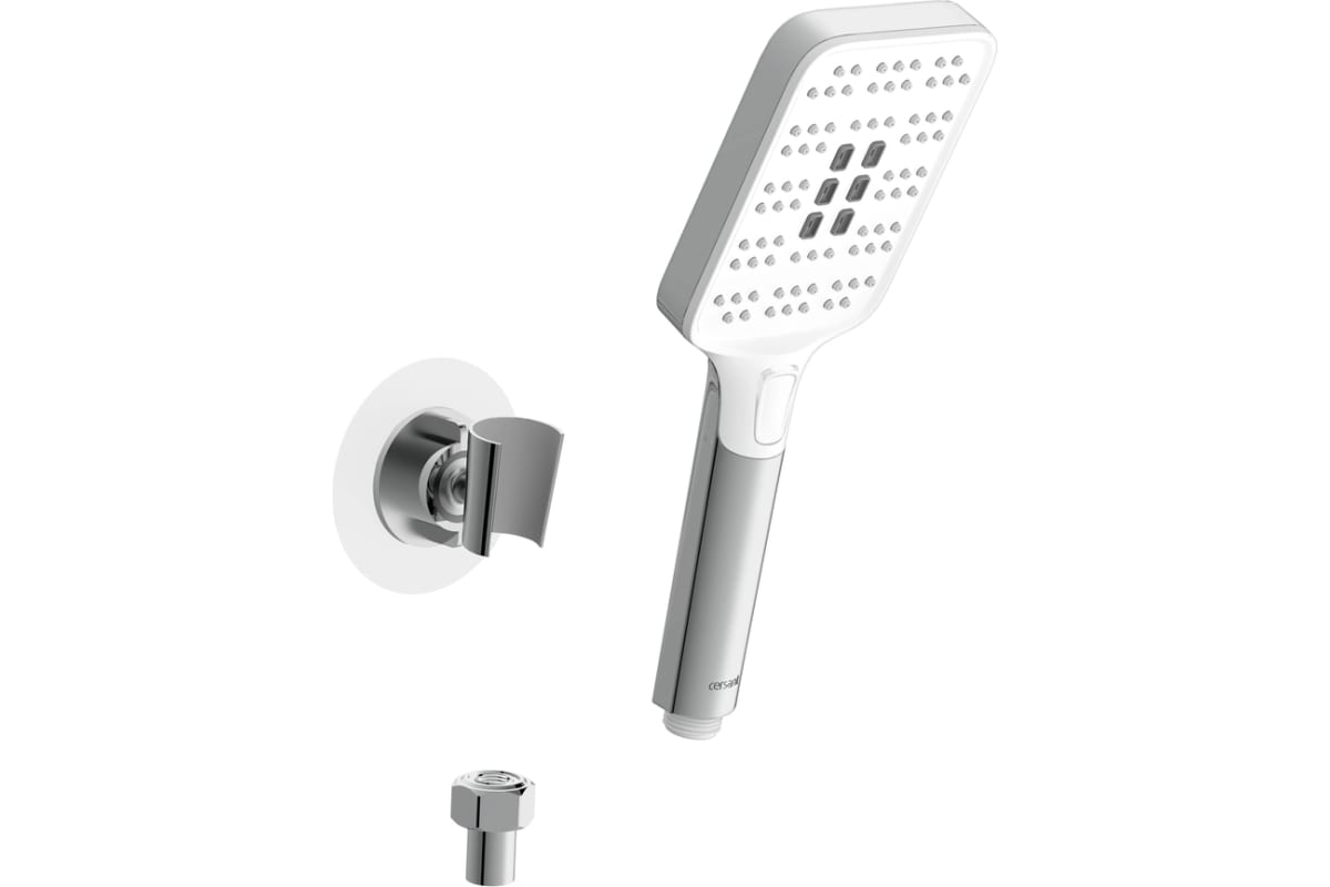 Душевой гарнитур FERRO оснащён 12-сантиметровой квадратной лейкой с тремя режимами подачи воды, которые переключаются нажатием на кнопку. Шланг с двойной оплёткой из нержавеющей стали и накидной гайкой не перекручивается и не боится бытовой химии. Кронштейн можно установить на любой высоте и зафиксировать без сверления. Душ можно настроить под себя, поскольку угол лейки, установленной в держатель, регулируется. Никель-хромовое покрытие сантехники легко поддерживать в чистоте, и оно долго остаётся как новое. Силиконовые форсунки очищаются несколькими движениями руки. Все материалы безопасны и долговечны. В комплекте есть всё необходимое для установки оборудования.