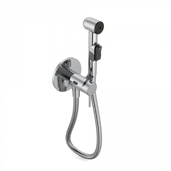 Встраиваемый смеситель с гигиеническим душем имеет крючок для полотенца.
