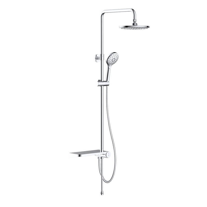 В комплект входит: Душевая лейка, шланг для душа, полочка, настенный держатель.