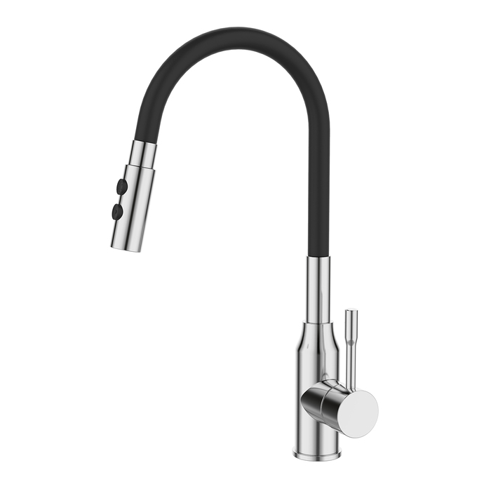 Черный смеситель из коллекции Meal – демократичное решение для современной кухни с высокой функциональностью. Излив смесителя гнется в любом направлении, помогая дотянуться до самых труднодоступных уголков мойки и поверхностей за ее пределами.
