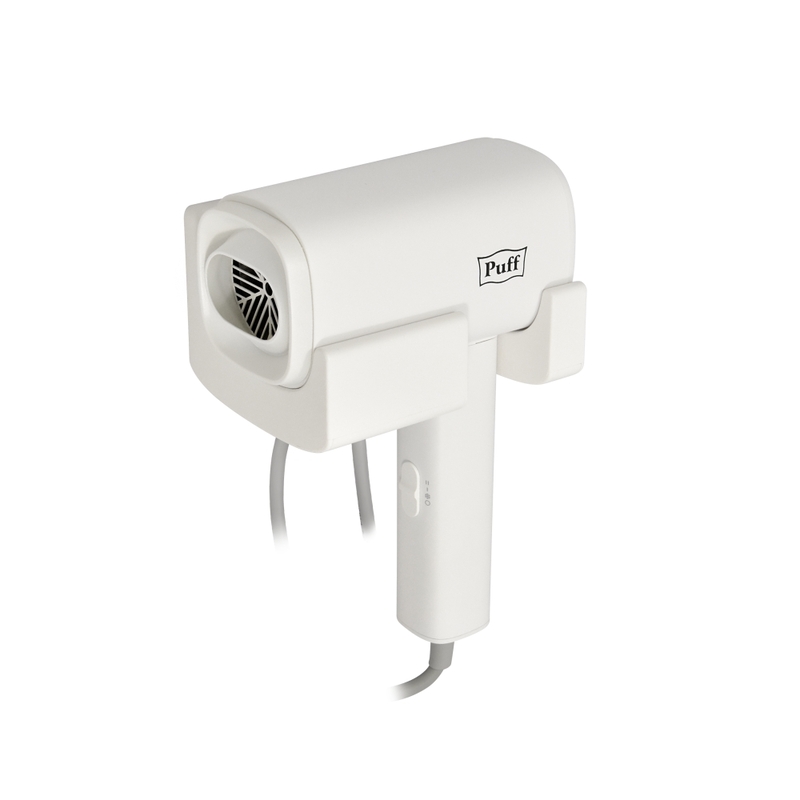 Фен для волос настенный "Puff-1601", белый матовый. Две скорости.