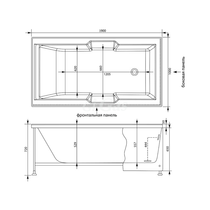 Антискользящее покрытие (специальные насечки на дне ванны).