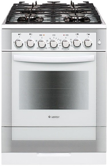 В электрическом духовом шкафу предусмотрены освещение, вертел и гриль, с помощью которого можно готовить аппетитные блюда с румяной корочкой. Также в белой комбинированной плите Gefest ПГЭ 6502-02 0042 имеется ящик для посуды.