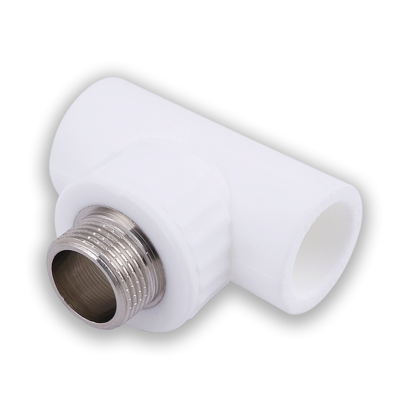Тройник комбинированный с наружной резьбой предназначен для резьбового соединения полипропиленовых труб со стальной запорной арматурой или стальными трубопроводами в местах разветвления труб.