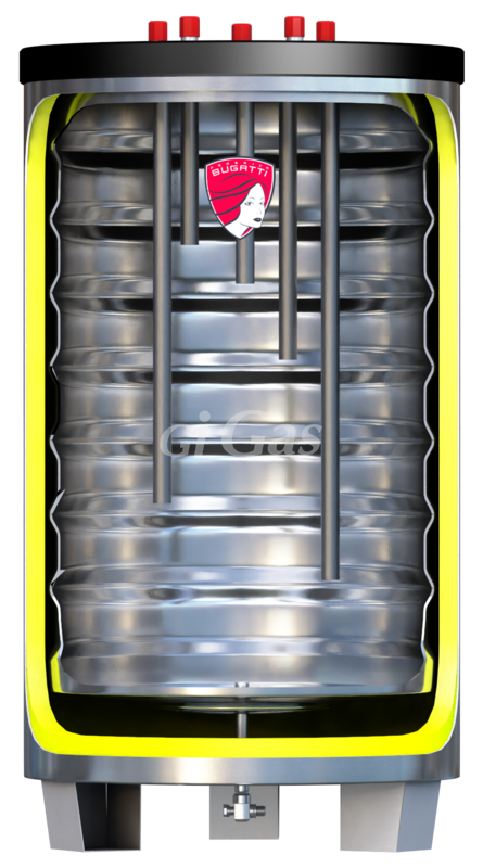 Бойлер косвенного нагрева FEDERICA BUGATTI выполнен из нержавеющей стали, бак в водяной рубашке. Эффективность теплообмена сохраняется на весь срок службы бойлера благодаря специальному оребрению бака. FEDERICA BUGATTI INOX PREMIUM обеспечит быстрый нагрев воды и равномерное смешивание ХВС с нагретой водой в бойлере. Внутреннее покрытие бака полностью из "пищевой" хромо-никелевой стали марки AISI 304.